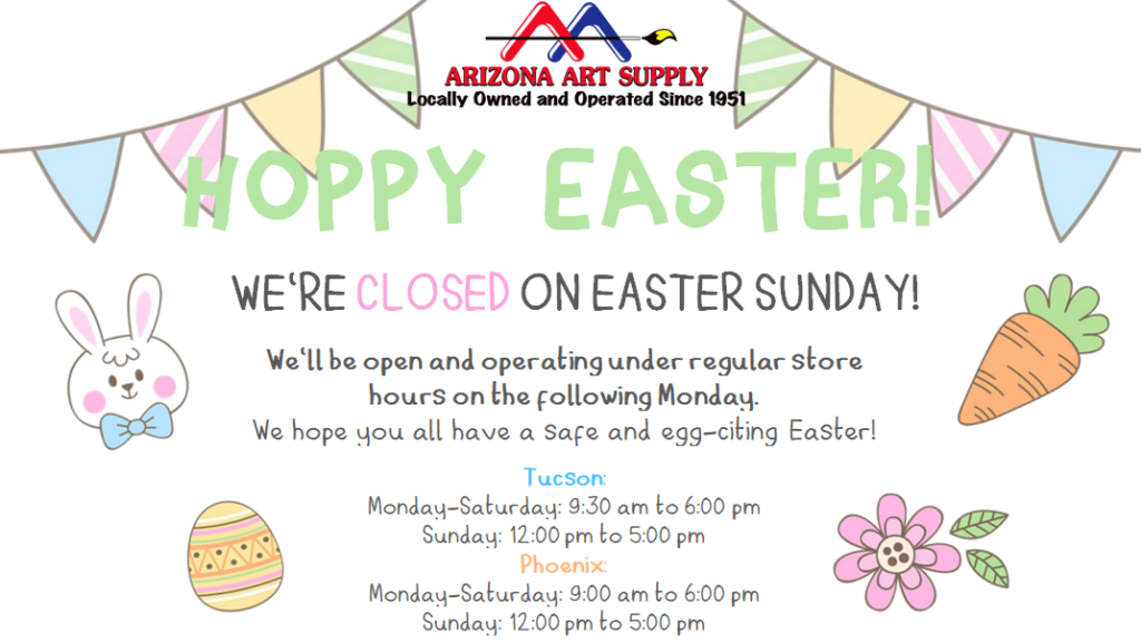 We are open shortened store hours at both our Tucson and Phoenix locations this Memorial Day to allow for our staff to spend with their friends and family. If you’re looking to paint, draw, or craft something unique in honor of a fallen loved one this Memorial Day, then don’t wait until the last minute.